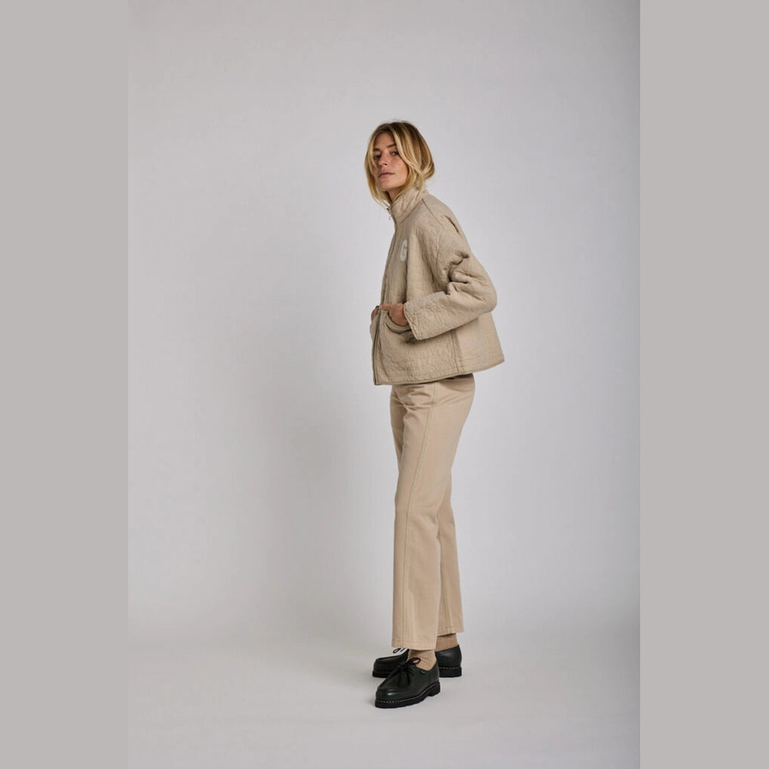 La Veste Clarté de Graine Clothing est une veste matelassée chaude, douce et responsable, entièrement fabriquée au Portugal. Réalisée en 100 % coton organique, avec un fil d’origine certifié GOTS® et une teinture conforme au standard Oeko-Tex® 100, elle offre confort, durabilité et un impact réduit sur l’environnement.