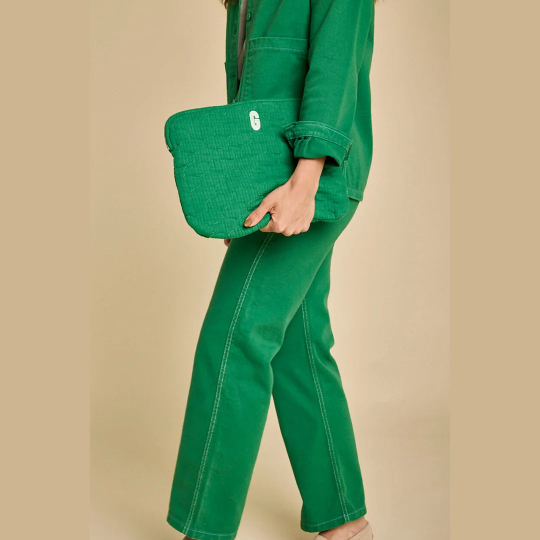 La pochette Songe de Graine allie douceur, style et engagement. Confectionnée au Portugal dans un coton biologique certifié GOTS, elle protège ton ordinateur grâce à son matelassage intégral. Son coloris vert apaisant est relevé par une délicate broderie couleur vanille. Un accessoire responsable, 100 % fonctionnel et fabriqué en Europe, pensé pour les esprits libres et organisés.
